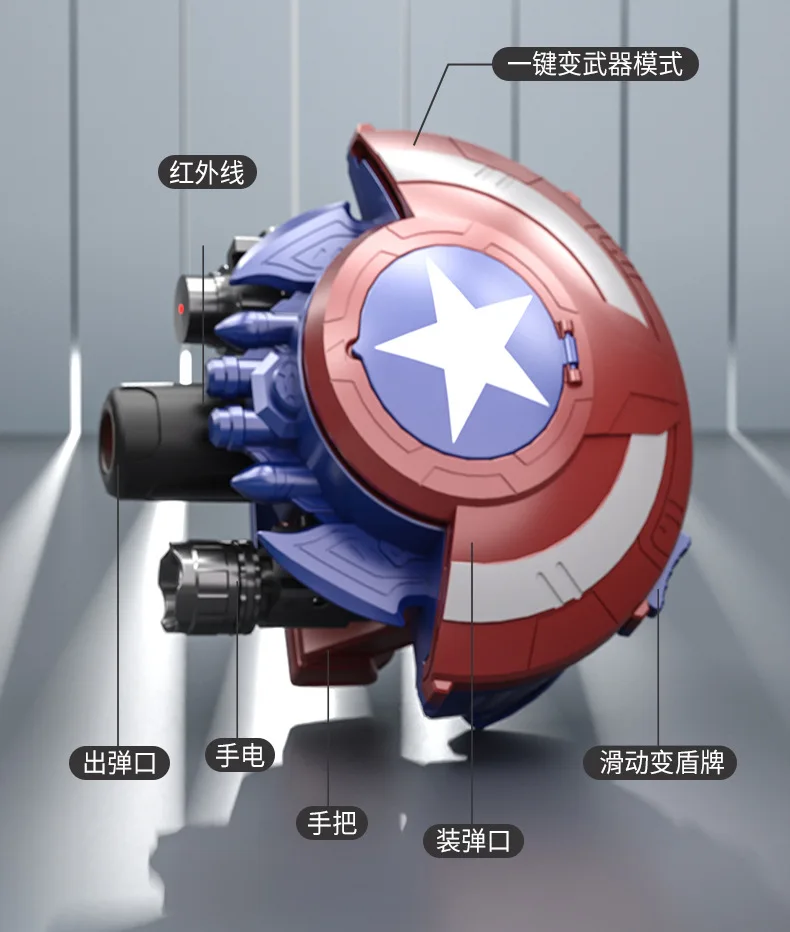 Captain America Light Shield Transforming Electric Launcher Water Baby Battle Shooting Boys Gift Toy Action Figure Collectible