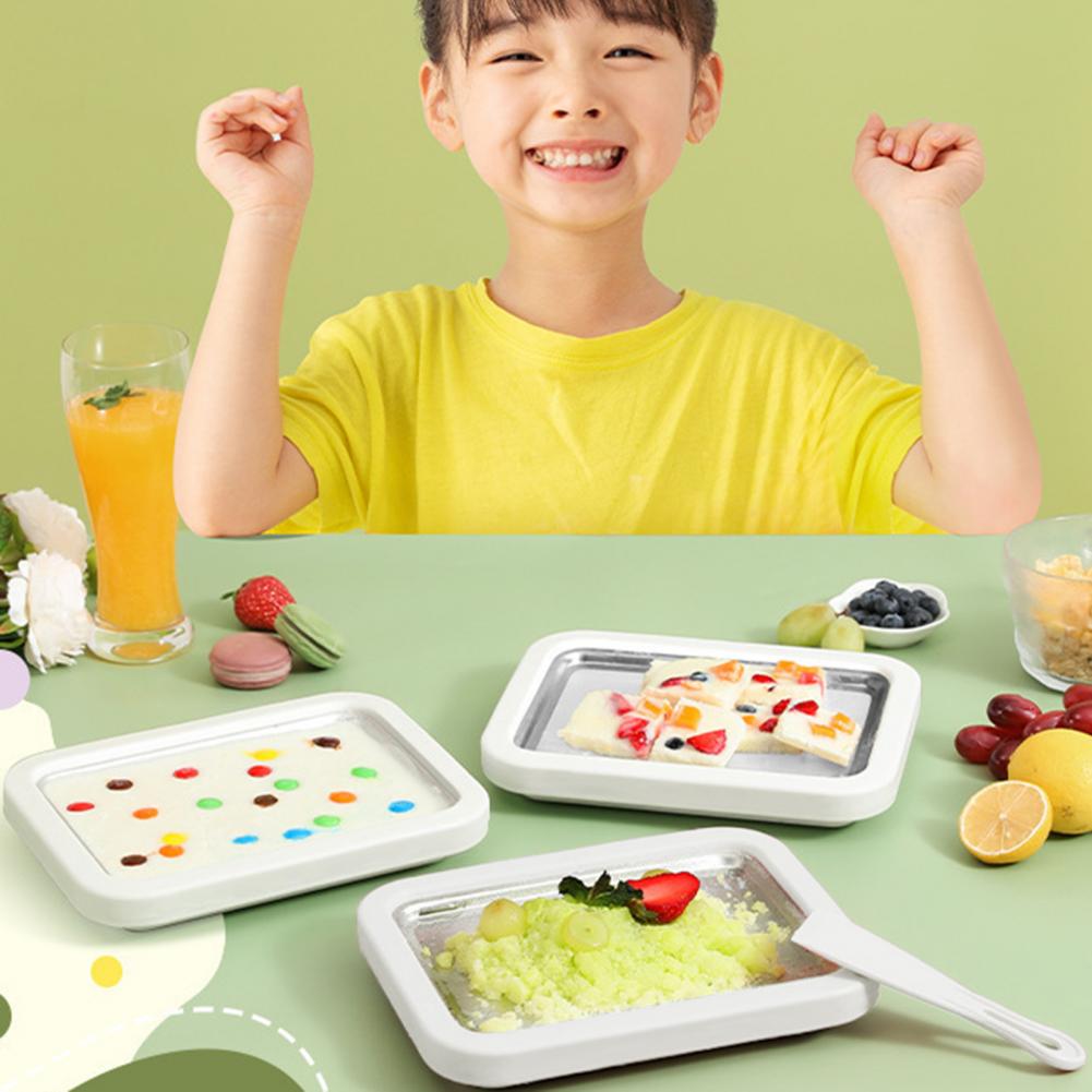 To use the ice fryer, simply pour your mixed ice cream powder and milk onto the freezing surface. Stir continuously until the mixture reaches a smooth and solid consistency. In just 3-5 minutes, you'll have delectable homemade ice cream ready to be personalized with fruits, nuts, or chocolate for a delightful touch.