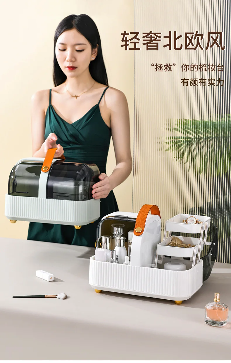 Portable Cosmetics Storage Box Desktop Lipstick Skin Care Products Jewelry Storage Organizing Rack Dust-proof Vanity Storage