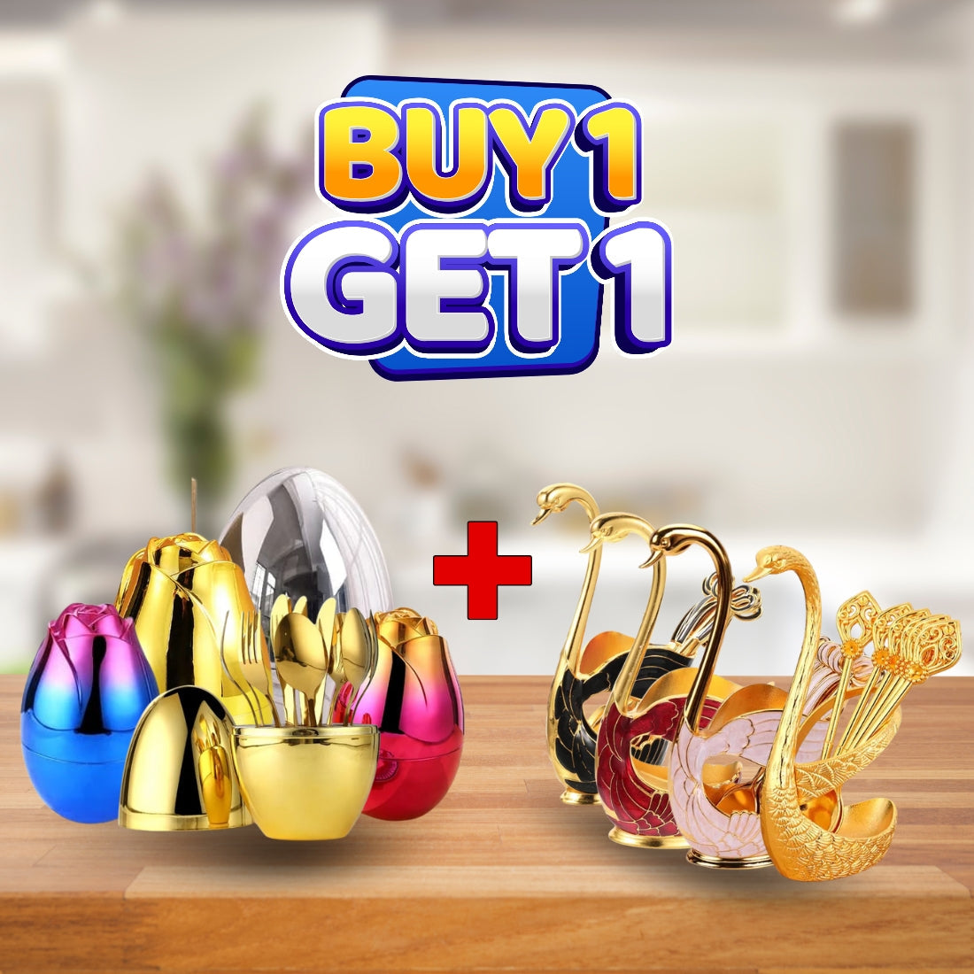 Swan Spoon Set with FREE Egg Spoon Holder – Elegant Dining Cutlery